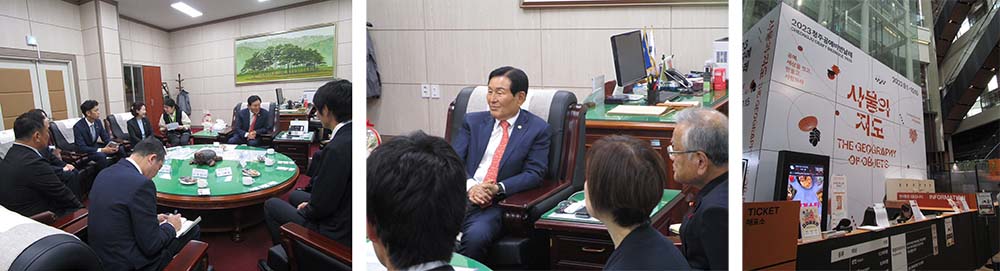 チョンジュ市議会正副議長をまず表敬訪問し、「チョンジュ工芸ビエンナーレ」、「韓中日国際フォーラム」(このフォーラムで新潟総踊りまつりを紹介)ユッコリ市場の視察、チョンジュ文化産業振興財団のピョン理事長への訪問など、活発に質問して意見交換を行なって来ました。