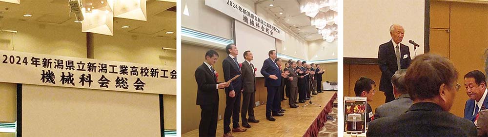 昨晩は「新潟工業高校 新工会 機械科会」の総会が開催されました。私は第35回の卒業生です。総会では、役員の改選が承認されて新会長のもと新しいスタートを切りました。来賓として、学校長をはじめ、新工会の会長、顧問、各科の会長。そして新工の卒業生ということで、小島晋県議、佐藤正人市議、山際務市議から出席していただきました。90歳超えの大先輩からも貴重なお話しを聞かせていただきましたし、同級生や先輩方と語り合うことが出来て、とても良い総会となりました。また、基調講演においては、ビジネスで頑張って成功している後輩の方のお話しを聞かせていただきました。皆で校歌を歌い、山口前会長による、恒例のエ−ルで結びとなりました。うまく言えませんが母校っていいですね。