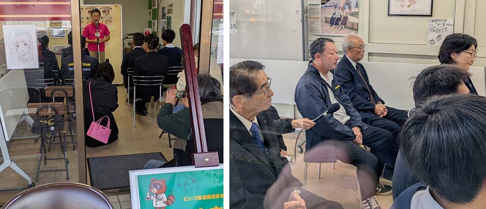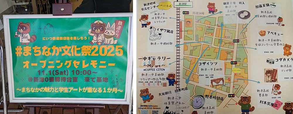「まちなか文化祭2025」が、にいつ鉄道商店街で今月30日迄開催されています。10時から@新津0番線待合室 来て基地 においてオ−プニングセレモニーが行われました。新津一中と新津高の生徒さん達の素晴らしい作品の数々が、商店街の各お店に展示してあります。この文化祭は、中高生の提案を受け、区の若手職員が協働して開催にこぎ着けたものです。一中の生徒さんが、実行委員長を務めているんです。本日のセレモニーでは素晴らしい挨拶をしてくれました。皆さんどうぞにいつ鉄道商店街に足を運んでいただきまして、お買い物と作品観賞をお楽しみ下さい。