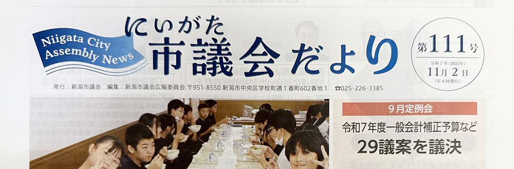 にいがた市議会だよりに、一般質問の要旨が載っていますのでぜひご覧ください。