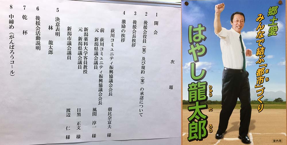 お知らせ, 活動報告 はやし龍太郎後援会設立総会開催(平成30年12月16日㈰・キャトルセゾン) りゅうたろう2018年12月17日2018年12月26日 平成30年12月16日㈰ 秋葉区キャトル・セゾンにおいて、「はやし龍太郎後援会」設立総会が開催されました。家族そろって皆様にご挨拶いたしました。 当日の次第とポスターです。 左より、遠山博明様、朝比奈富夫様、風間淳一様、目黒正文様、渡辺仁様より励ましのお言葉を頂戴いたしました。 後援会のメンバーです。期待に沿えるよう頑張ります。 盛大な懇親会の模様です。ありがとうございました。 りゅうたろう 皆様の「声」を市政に! 投稿を作成しました 247