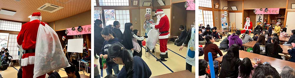 ご家庭において聖なる夜を@過ごされている方も多いと思います。この日曜日は「荻川子ども食堂」で、ちょっぴり早いクリスマスでした。サンタ🧑🎄さんにも事情を話して少し早く来てもらいました。雪がまだ積もっていませんので、タイヤ付きのソリで、コミュニティセンターに来てもらいました。子ども達はとても喜んでくれました。お菓子のプレゼント🎁をもらい、美味しいカレ−を食べてみんな笑顔で、帰途につきました。それにしても荻川子ども食堂のカレ−はとても美味しいです🍛サンタさんもお替わりしていました、ソリに乗りっぱなしで疲れがでたかな?😅