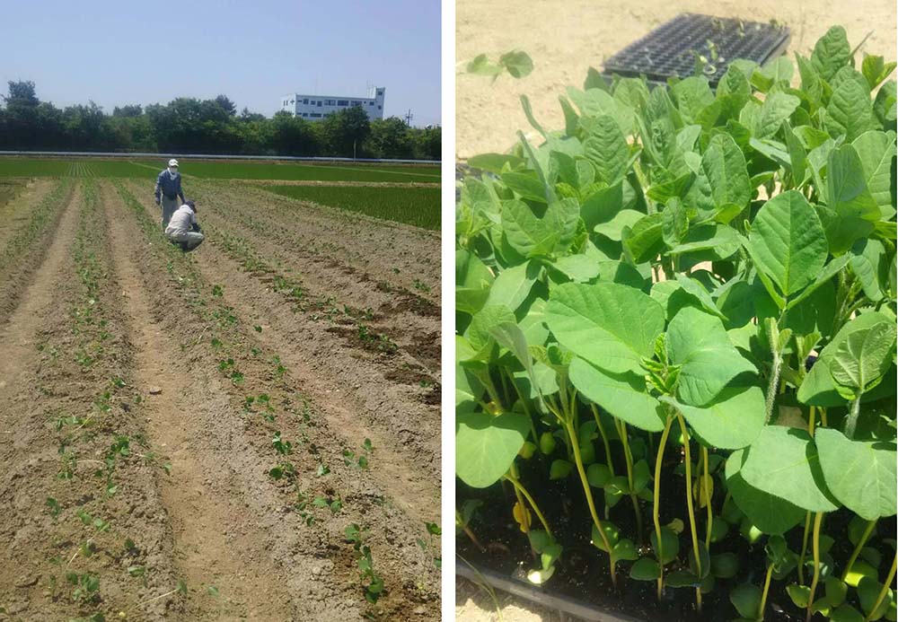 6月9日、高速道路脇の畑に枝豆の苗6000本を植えました。