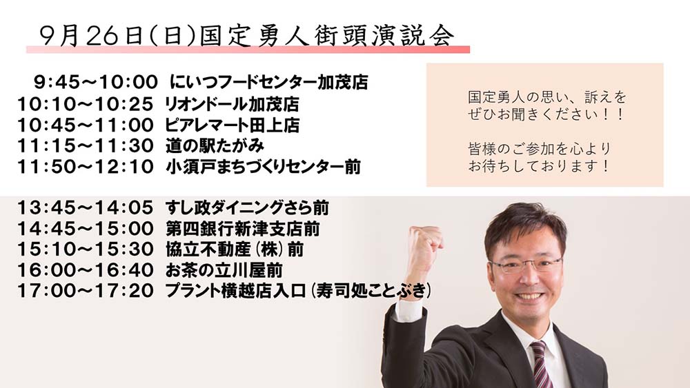 お知らせ 国定隼人さん街頭演説会 9/26㈰ りゅうたろう2021年9月25日2021年9月25日 是非とも、お出掛け下さいませ。国定勇人さんの生の声をお聴き下さい。私も応援演説させていただきます。 りゅうたろう 皆様の「声」を市政に! 投稿を作成しました 247