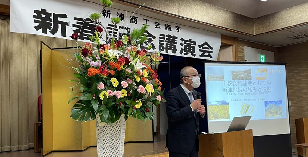 次の写真は7日に開催された新津商工会議所役員議員新年祝賀会のもので、新潟薬科大学の伊藤満敏教授より、記念講演をしていただきました。新津地域発展のための大きなヒントと申しますか、新津地域が進めて行かなければならない方向性を示していただきました。地域の為、住民の為、人の為をモット−に令和4年全力投球をしてまいります。